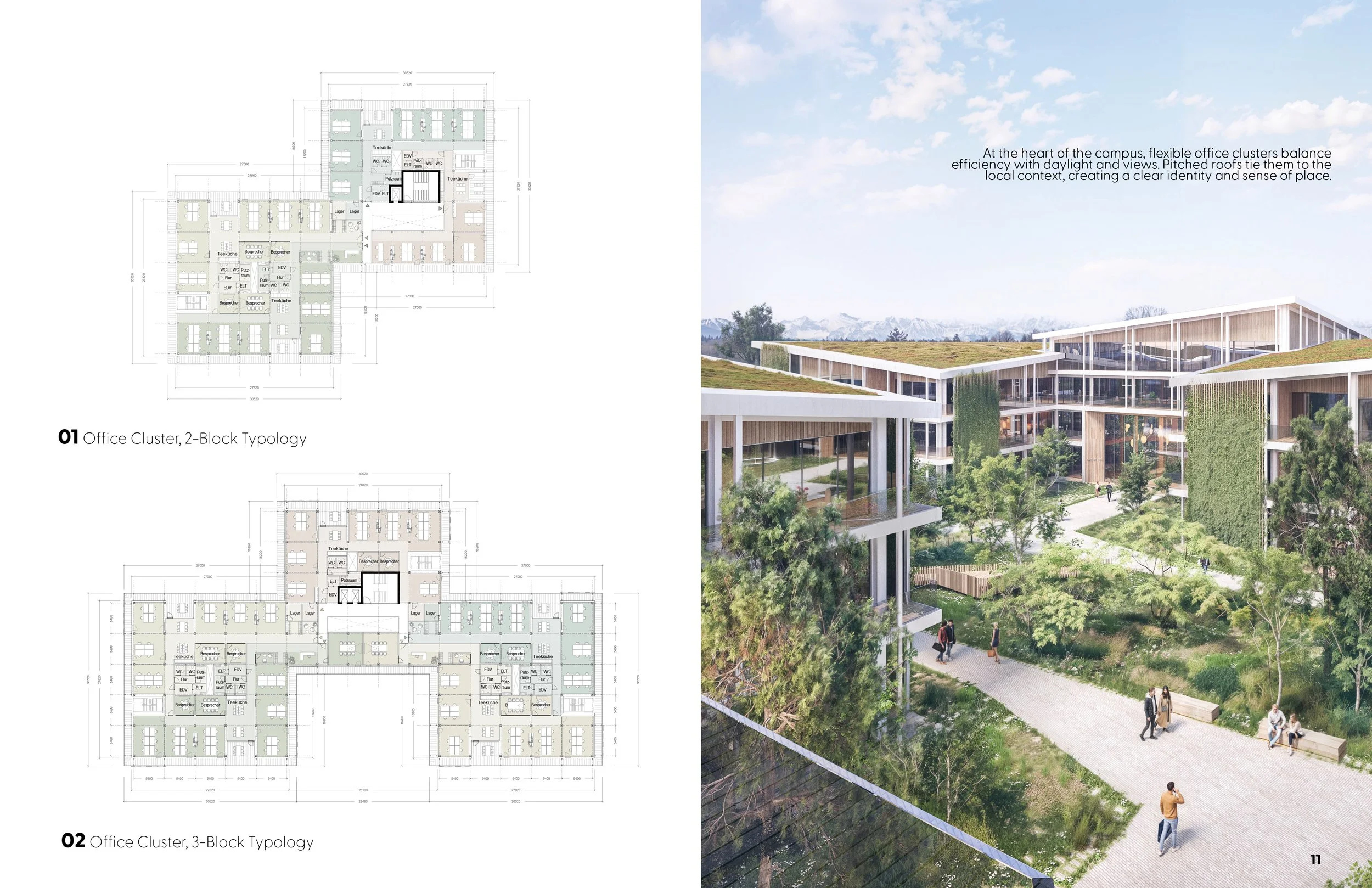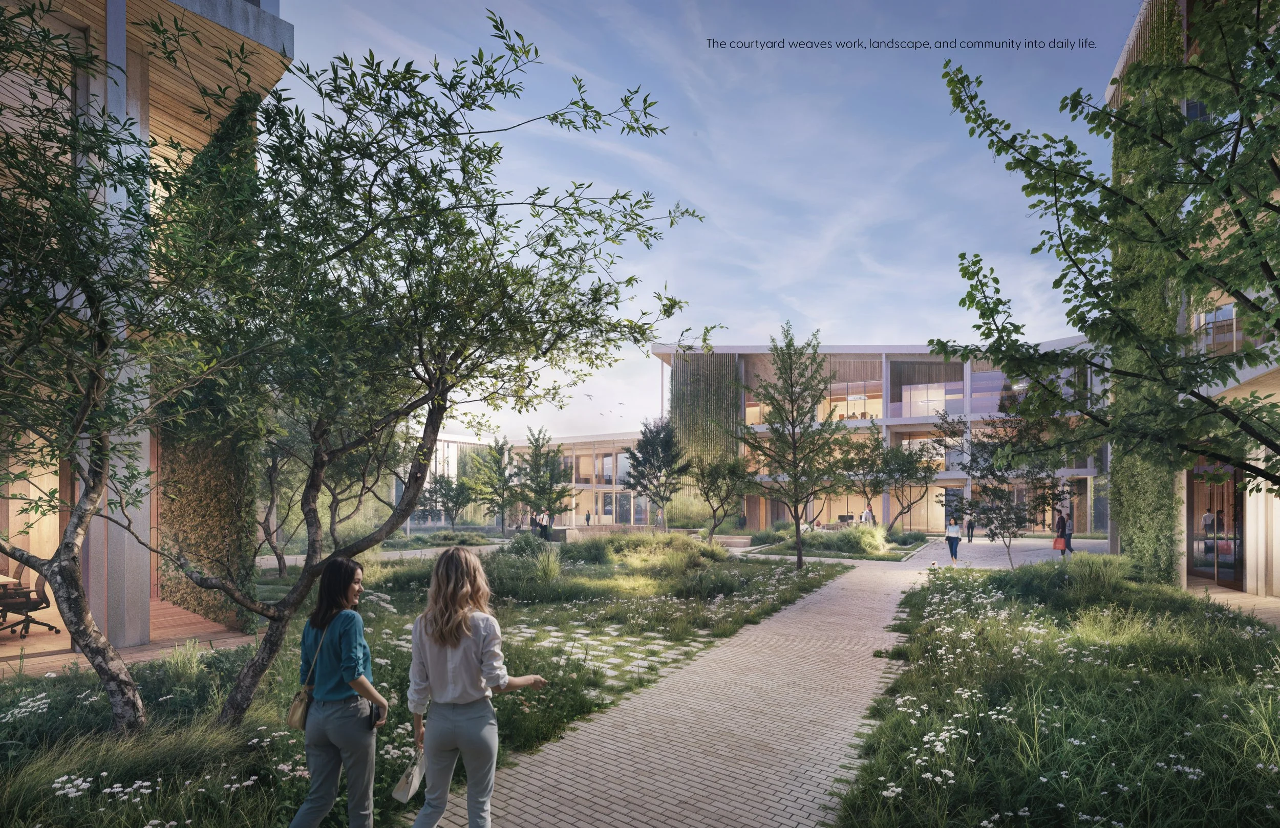 PROJECT ROLE: Lead Design Architect — Responsible for the office concept, massing and planning, landscape strategy, 3D modelling, early visualizations, and key design elements throughout the site.
